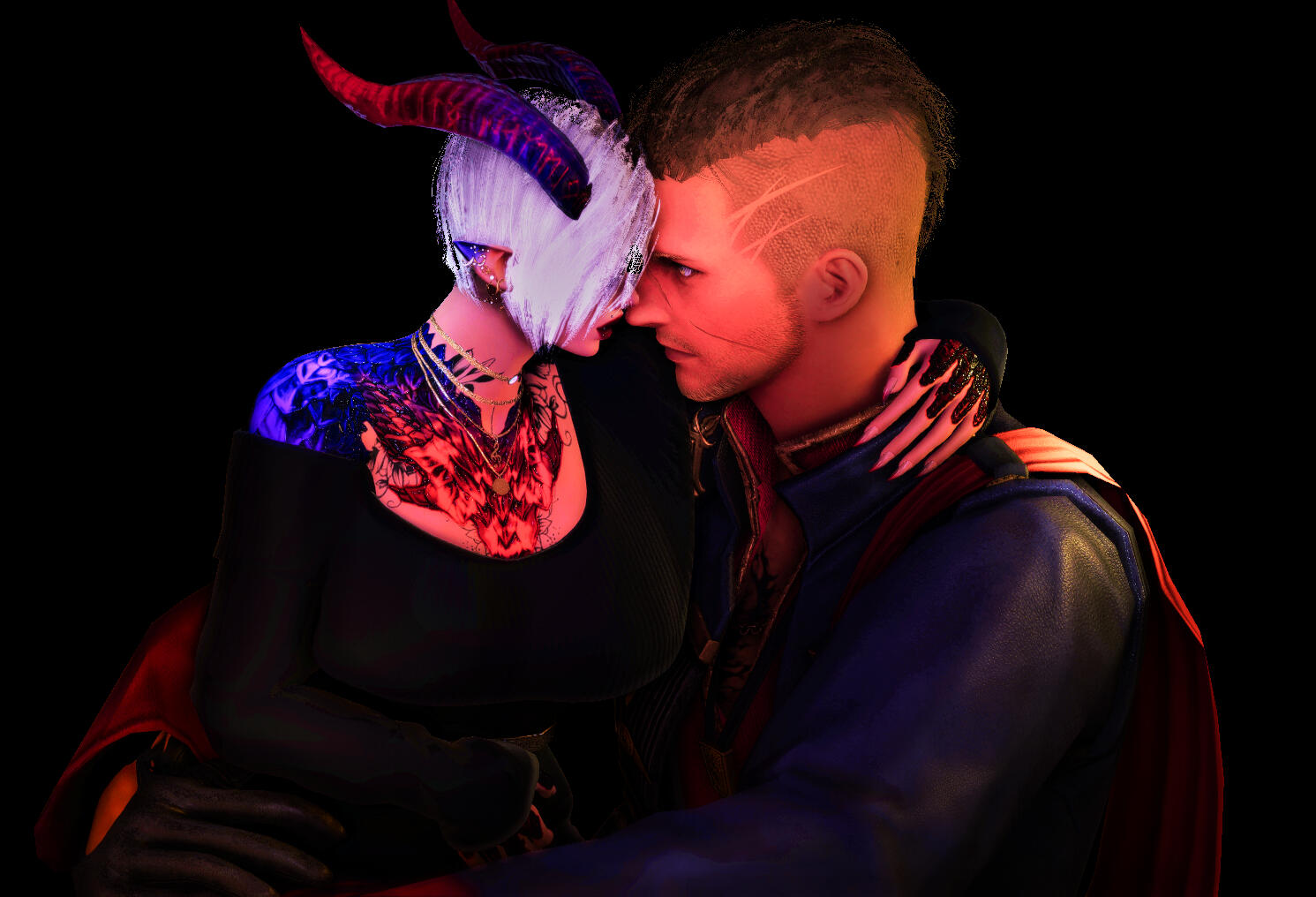 "Have you heard the tale of the woman who fell in love with Death? Her heart longed for him so deeply that she drove a blade into her own chest, seeking to escape the pain of living. When she awoke cradled in Death's arms, she found herself enveloped in an intoxicating, unbroken love. The ecstasies she shared with him were so profound that he granted her life once more. Yet, amidst this miraculous gift lay an unexpected curse for her; now, she was lost to her beloved once again, trapped in a world from which she had desperately sought release." — Red